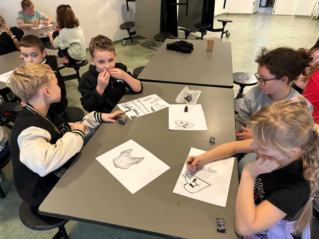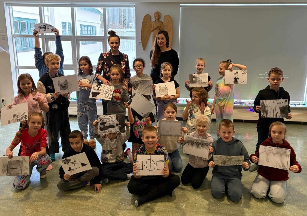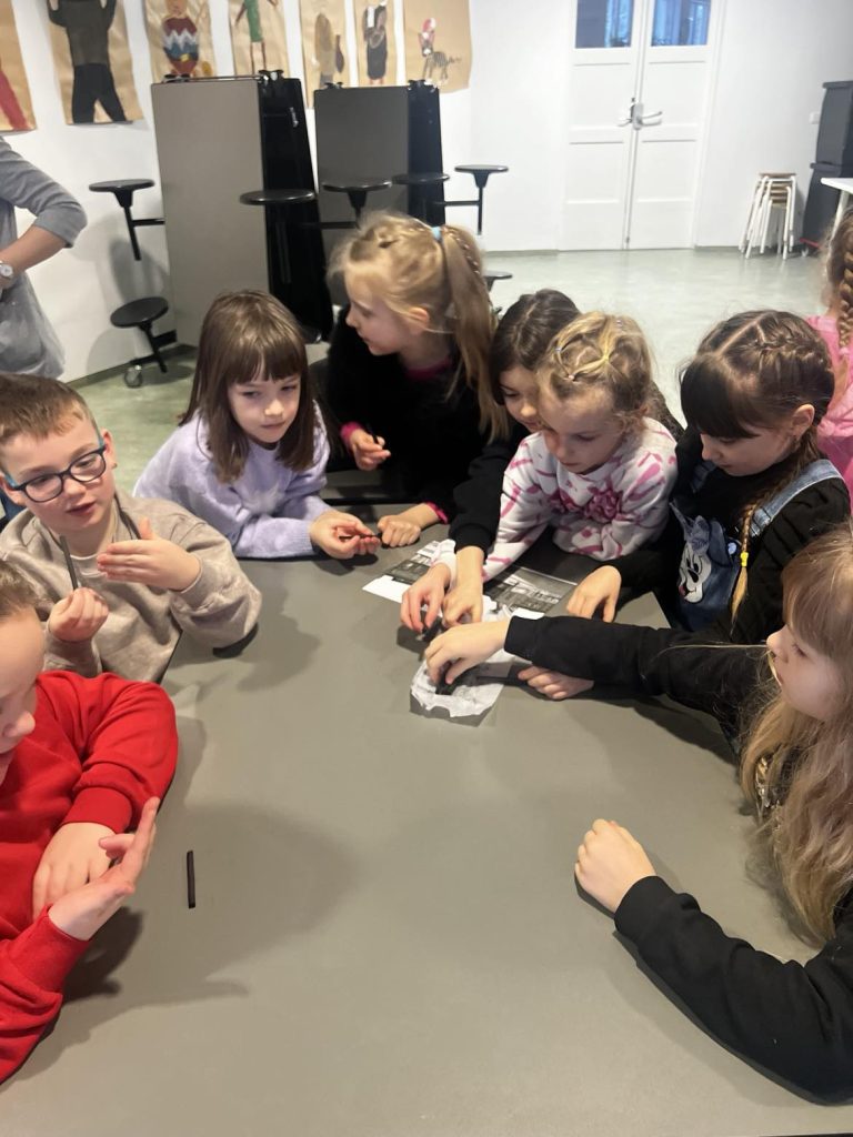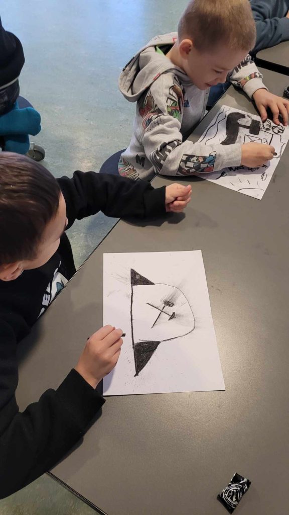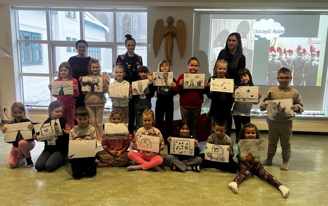 Klasy pierwsze i drugie dowiedziały się między innymi, gdzie leży Śląsk, co to jest familok, jak wygląda i jak pracuje górnik, poznały strój śląski… Był też czas na naukę tańca oraz mogły posmakować kopalnioków. Spotkanie zakończyły oczywiście szkice węglem. Ręce były dość brudne, przyznajemy, ale warto było! Rysunki piękne, buzie uśmiechnięte! Dziękujemy!