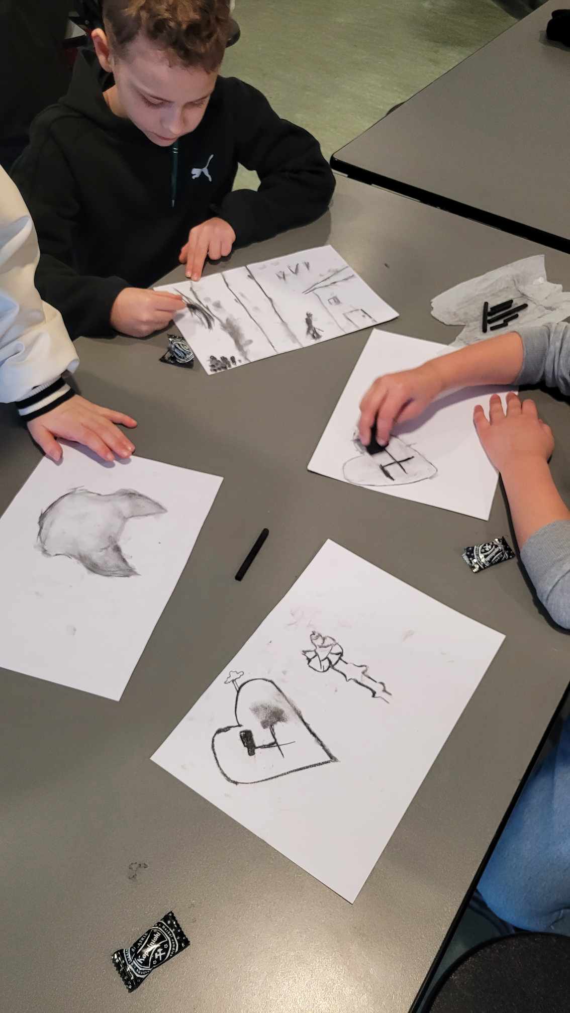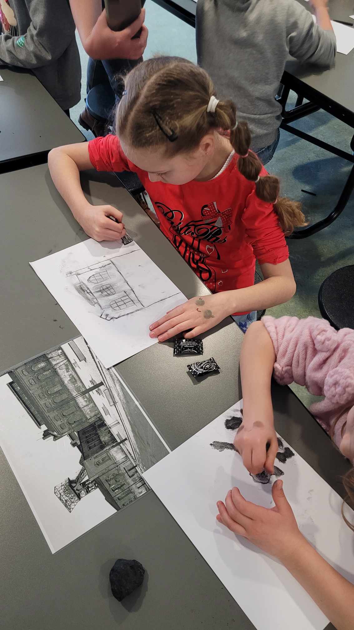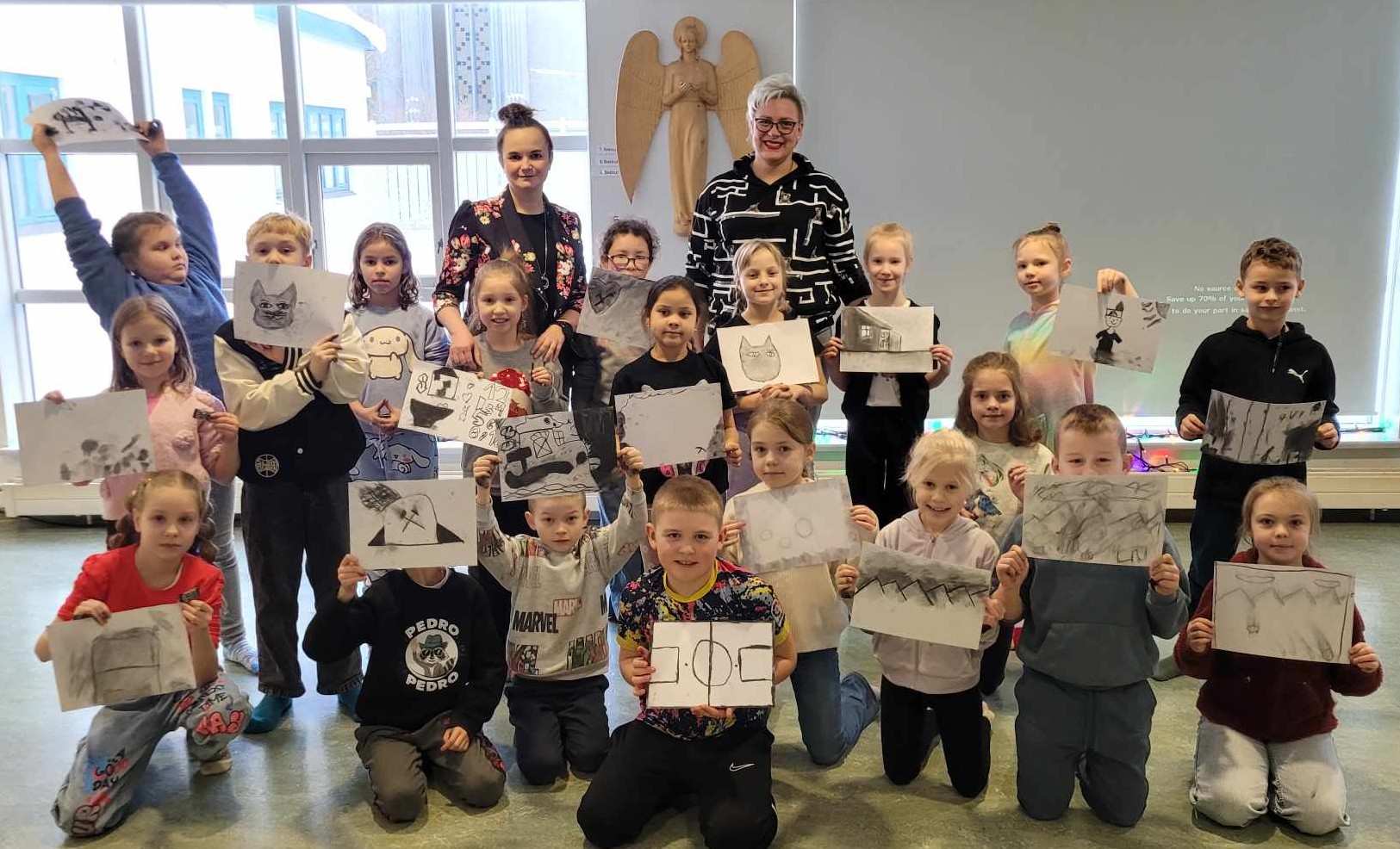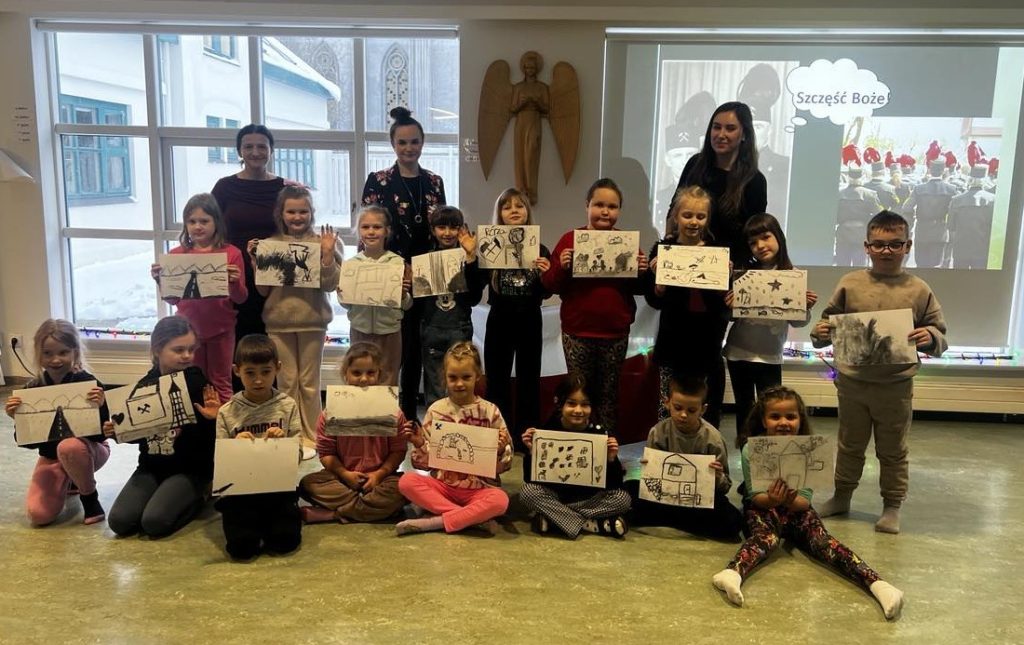 Klasy pierwsze i drugie dowiedziały się między innymi, gdzie leży Śląsk, co to jest familok, jak wygląda i jak pracuje górnik, poznały strój śląski… Był też czas na naukę tańca oraz mogły posmakować kopalnioków. Spotkanie zakończyły oczywiście szkice węglem. Ręce były dość brudne, przyznajemy, ale warto było! Rysunki piękne, buzie uśmiechnięte! Dziękujemy!