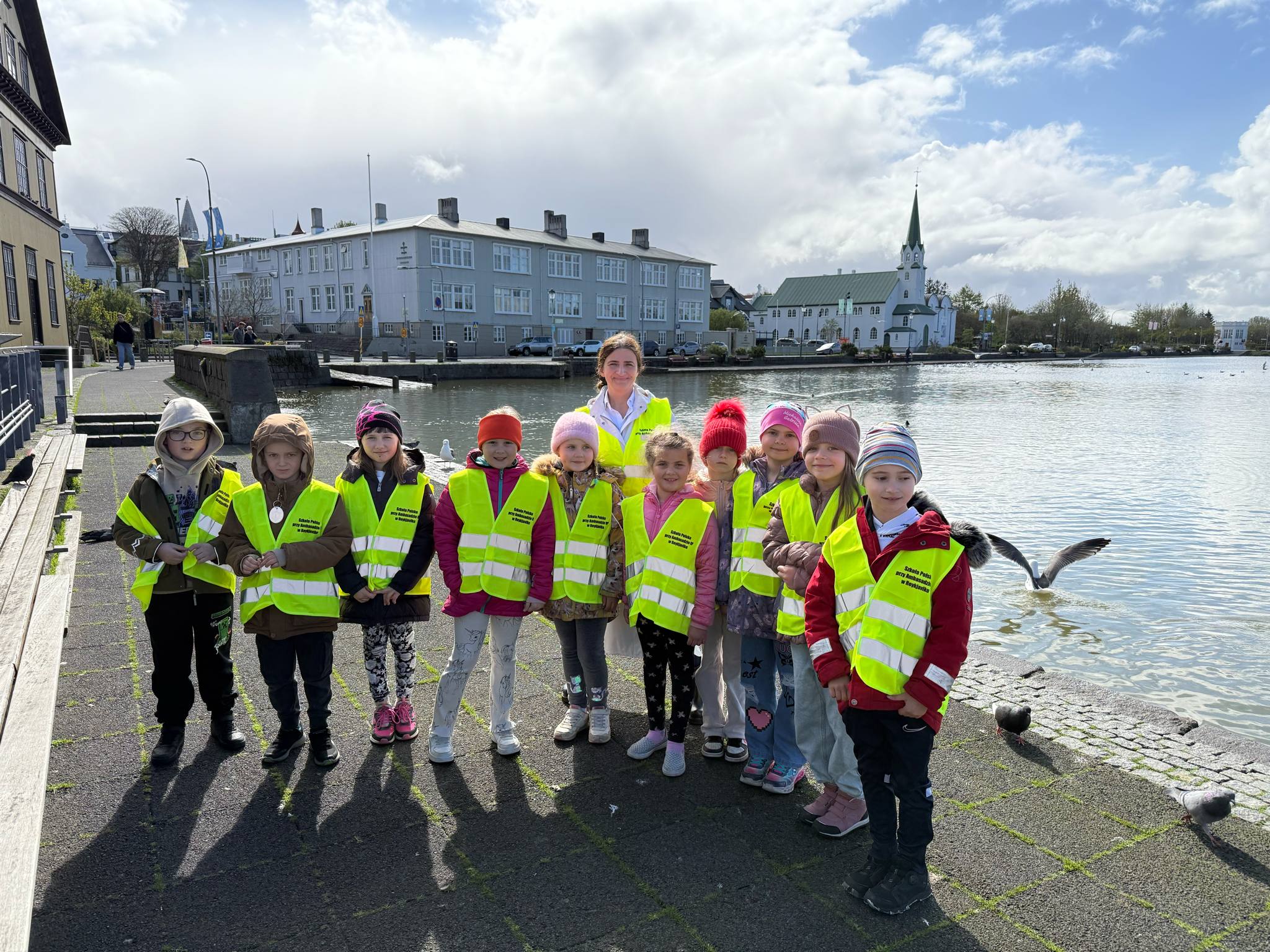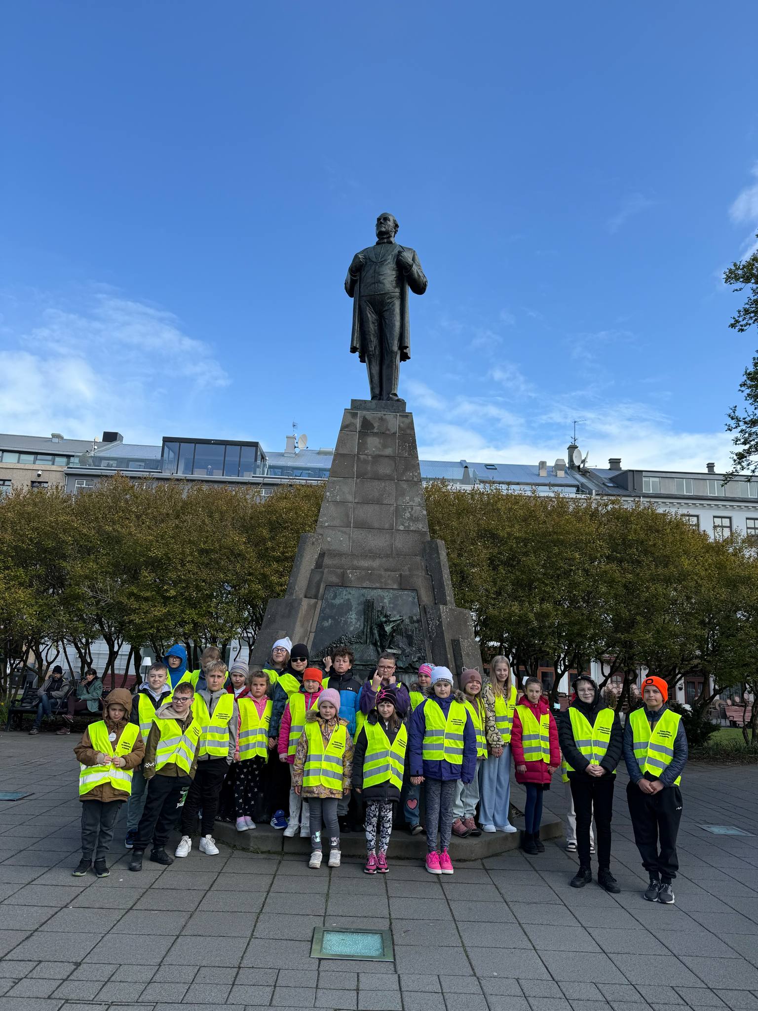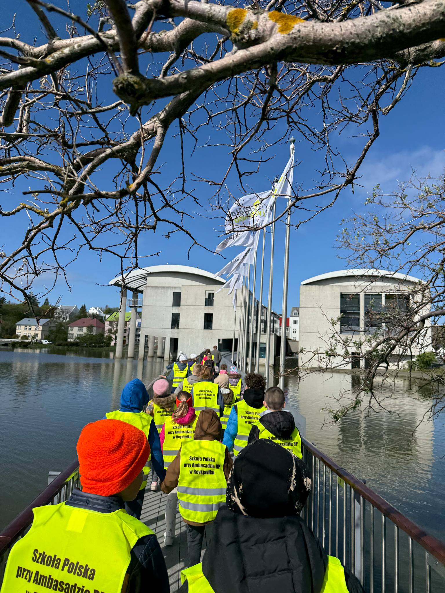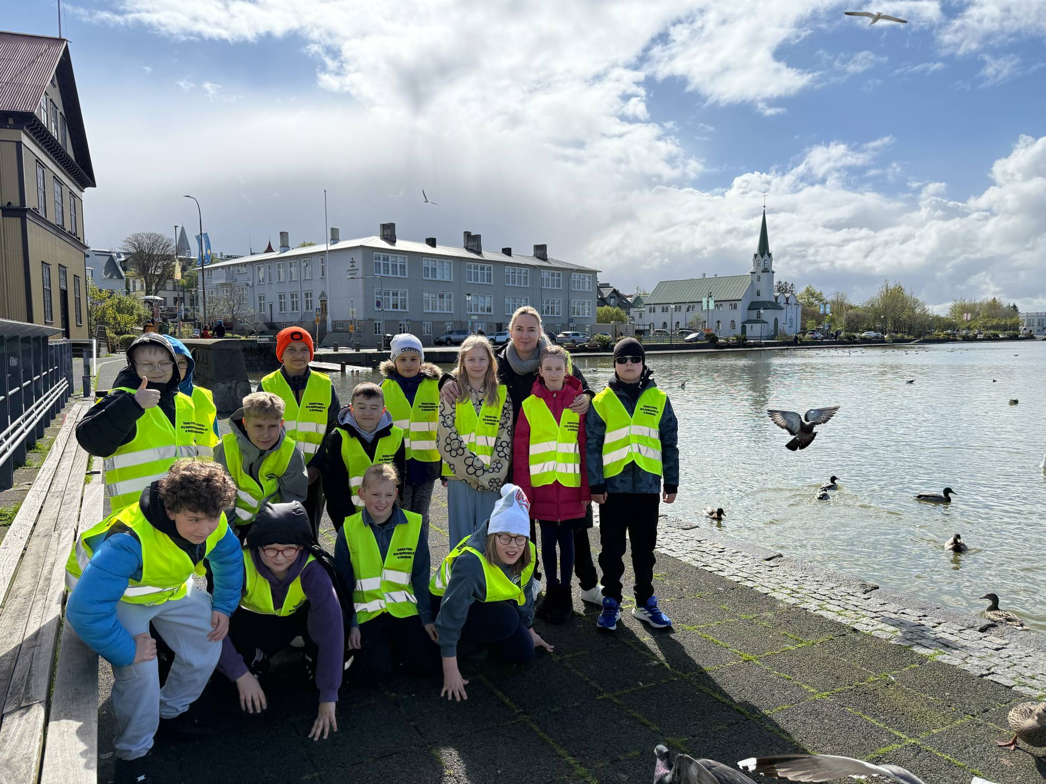 Podczas dzisiejszych zajęć uczniowie klasy I a oraz IV a wybrali się na wspólną wycieczkę po Reykjavíku. W czasie wycieczki starsi uczniowie z wielkim zaangażowaniem opiekowali się młodszymi koleżankami i kolegami. Zwiedzali ciekawe i ważne miejsca w stolicy Islandii. Spacerowali nad jeziorem Tjörnin, gdzie przyglądali się kaczkom i robili zdjęcia na tle pięknego krajobrazu z widokiem na kościół Fríkirkjan. Zatrzymali się także przy pomniku pierwszego prezydenta Islandii – Jón Sigurðsson (na Islandii nazywany jest Ojcem Niepodległości) gdzie zrobili pamiątkowe zdjęcie całej grupy. Mieli również okazję porozmawiać o budynku, w którym mieści się Islandzki Parlament (Alþingi), poznając jego historię i znaczenie dla kraju. Wycieczka była bardzo udana – pełna wrażeń, uśmiechów i ciekawych informacji.