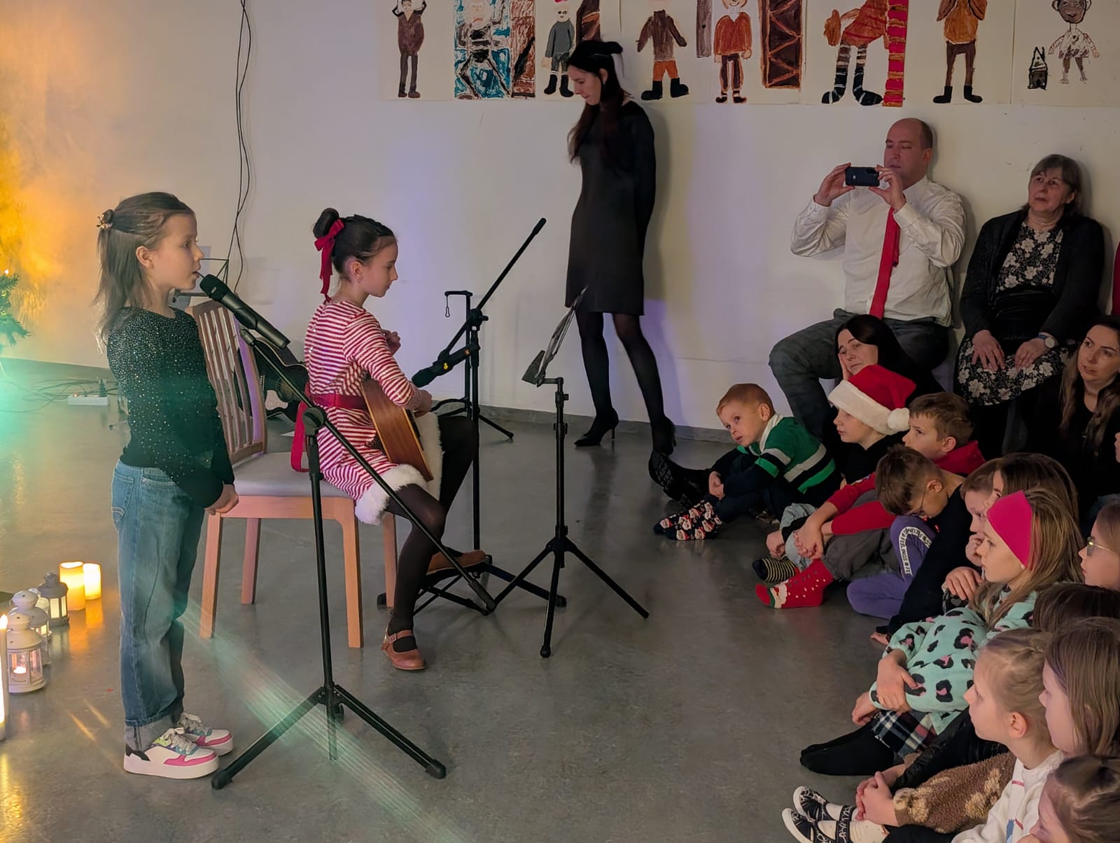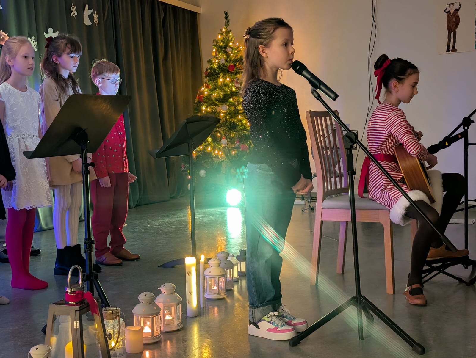 Z kolei Katalija (3b) zaśpiewała „Lulajże Jezuniu”, a na gitarze grała Maria (5a). Hania (4a) zaśpiewała kolędę „Gdy śliczna Panna”.