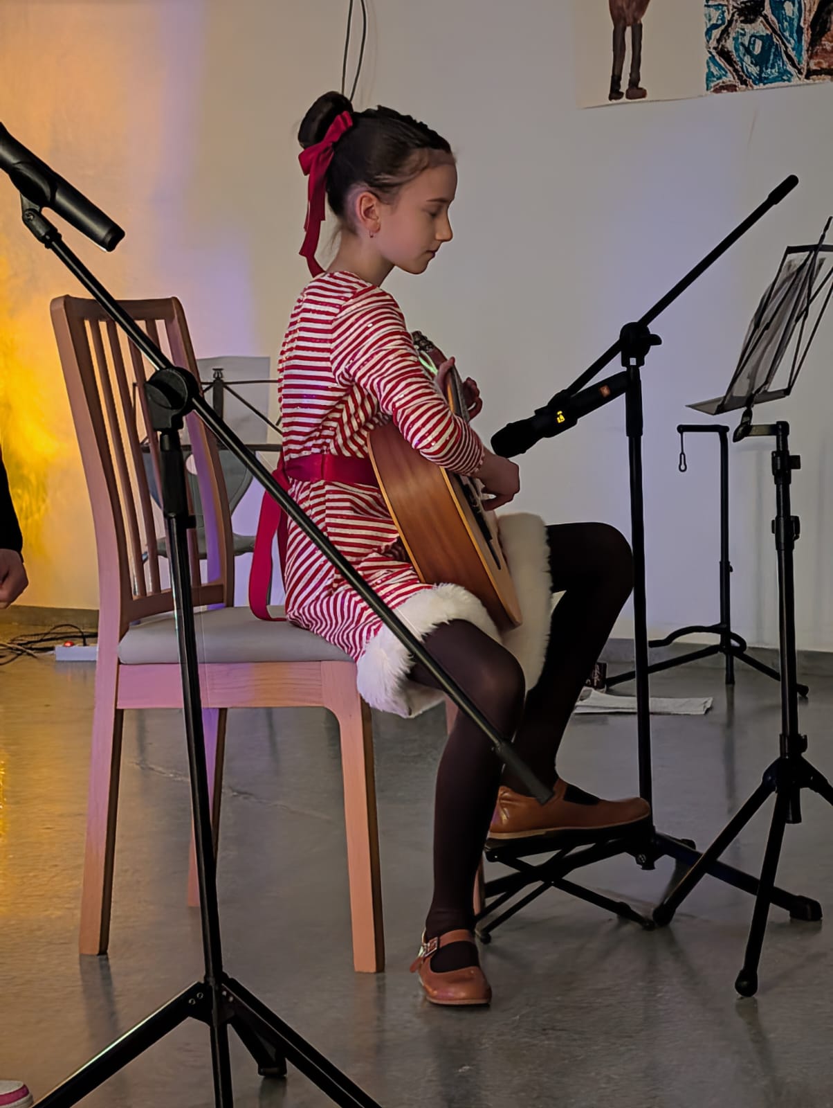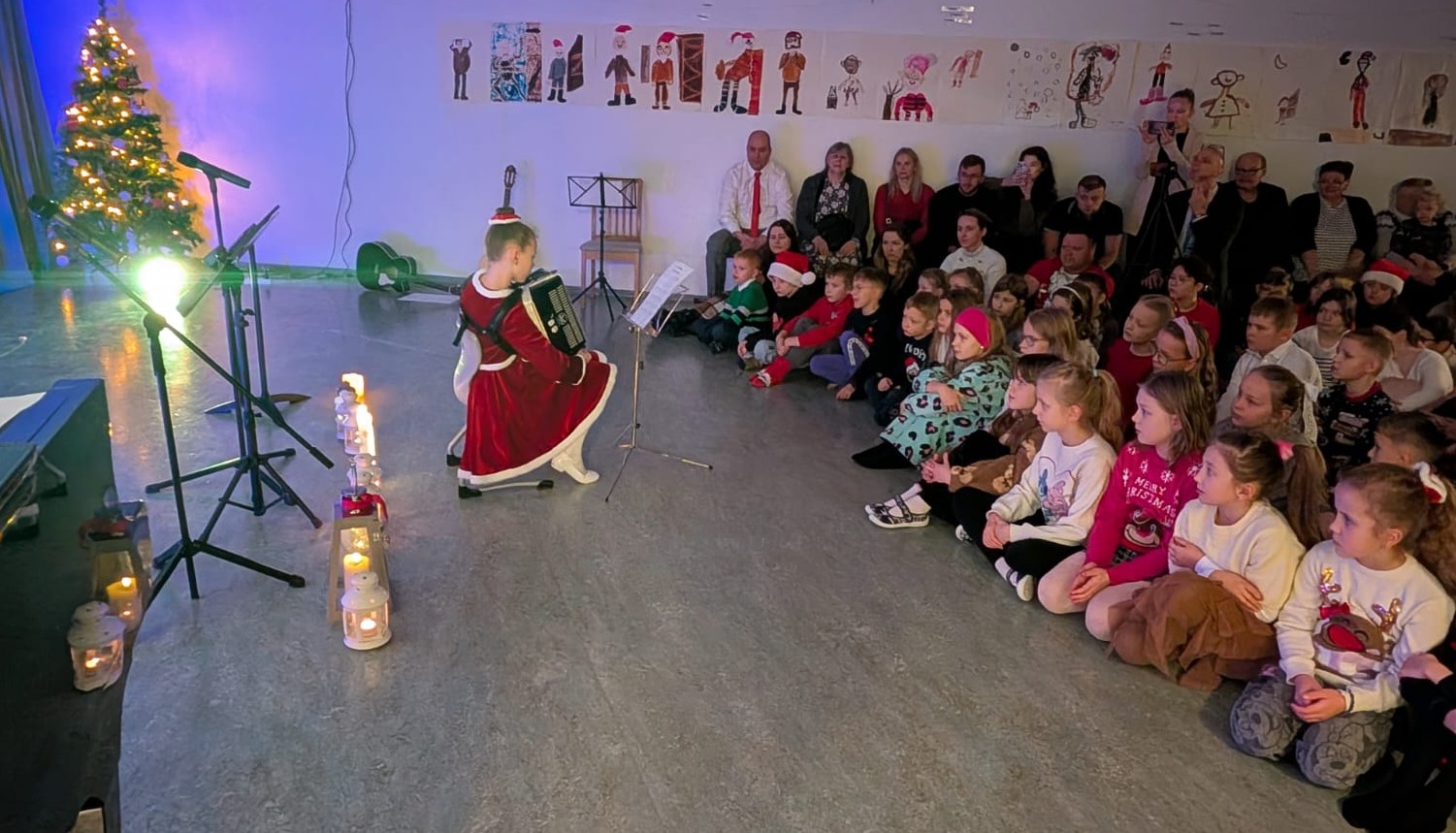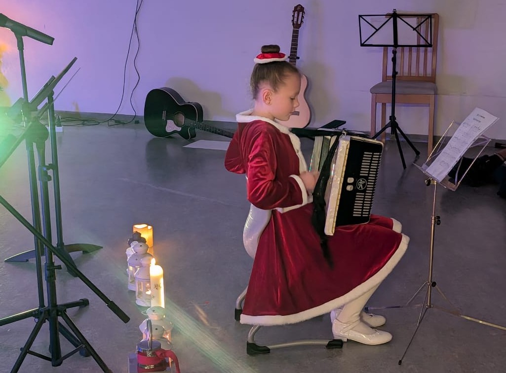 Pierwszy wystąpił Aron (5a), który na fortepianie zagrał „Cichą noc”, a następnie Wiktoria (3a) na akordeonie – „Wśród nocnej ciszy”.