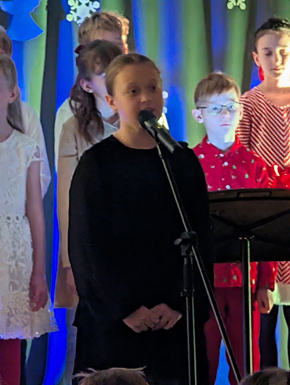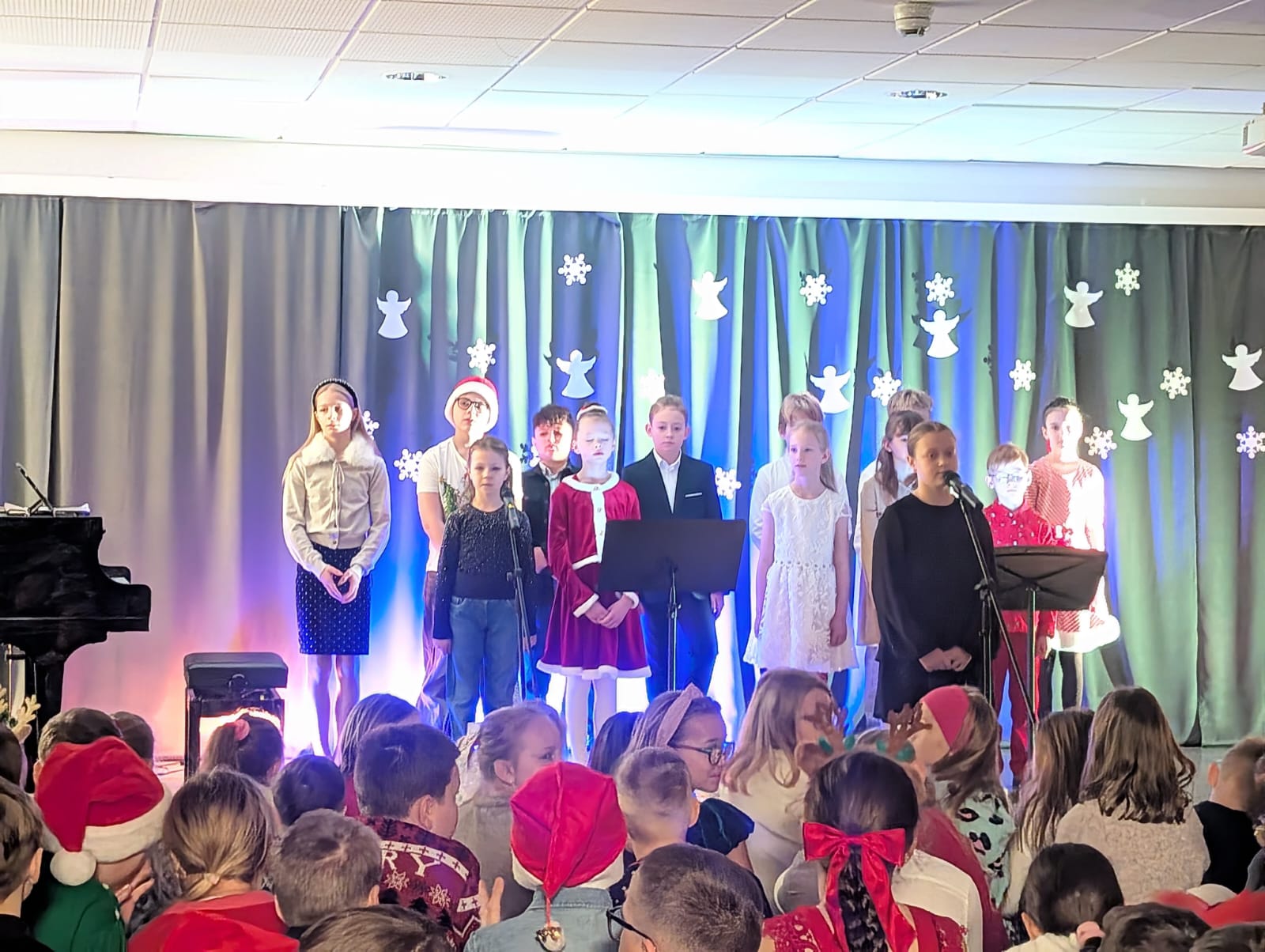 Cały chór zaśpiewał (przy akompaniamencie na fortepianie p. Magdaleny) – „Był pastuszek bosy”, a potem było „Dzisiaj w Betlejem”.